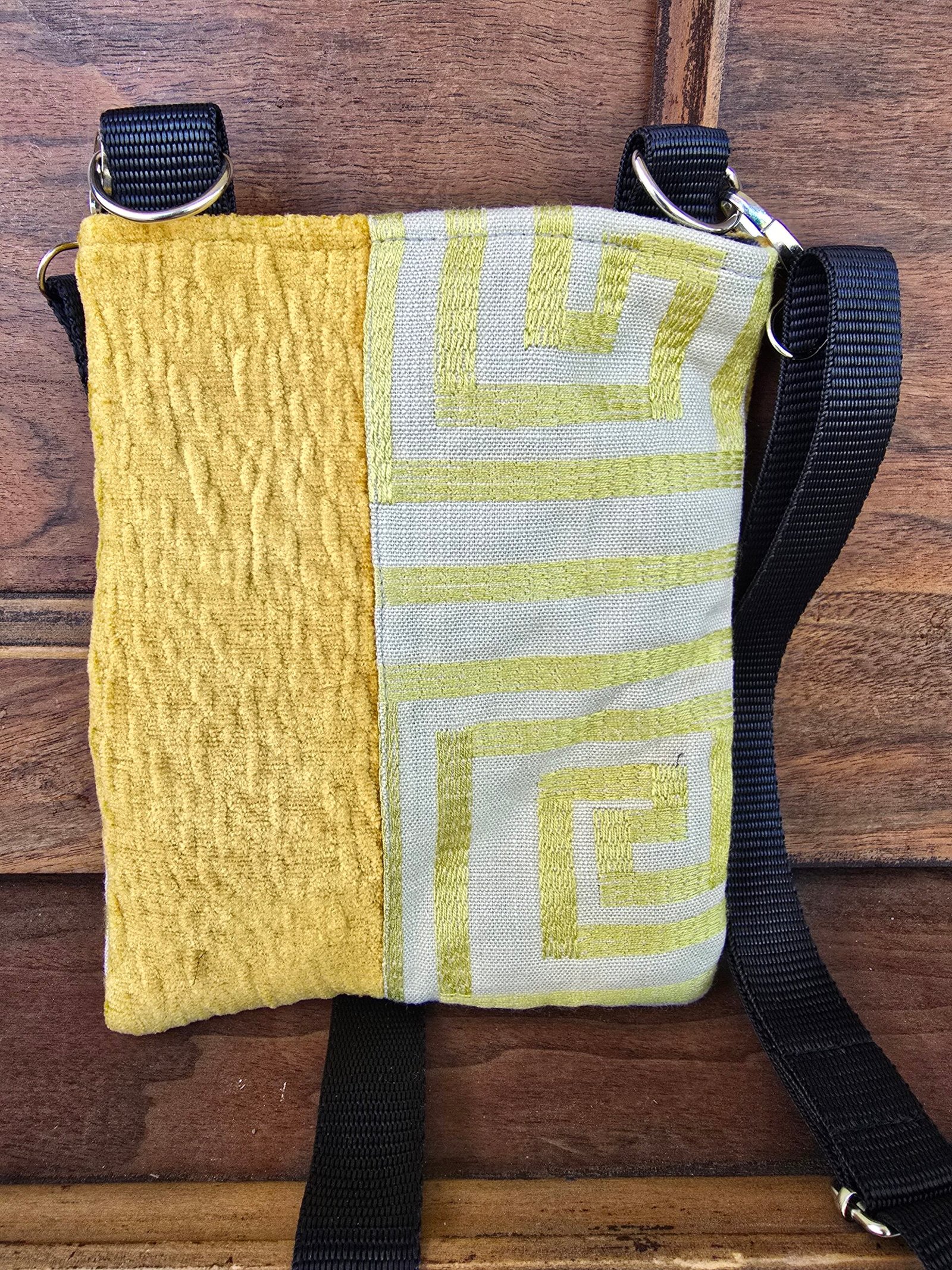 This cross body bag is made using upholstery fabric sample swatches that were destined for landfill. All fabric used in my products are clean and new when assembled. As these come from sample boards, each bag is completely original, and the colourway won’t be reproduced again.