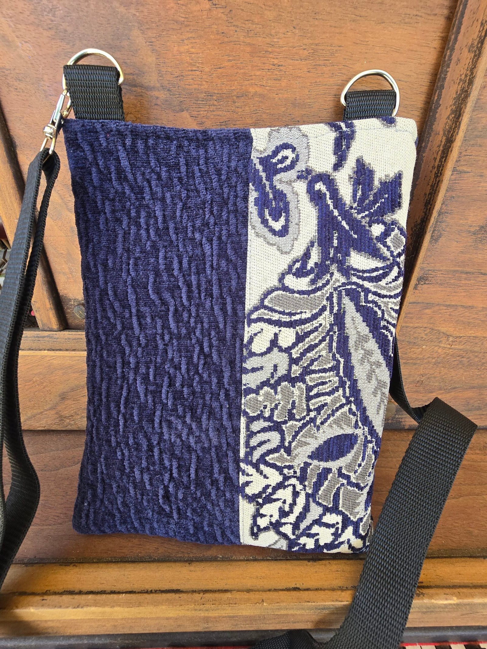 This cross body bag is made using upholstery fabric sample swatches that were destined for landfill. All fabric used in my products are clean and new when assembled. As these come from sample boards, each bag is completely original, and the colourway won’t be reproduced again.