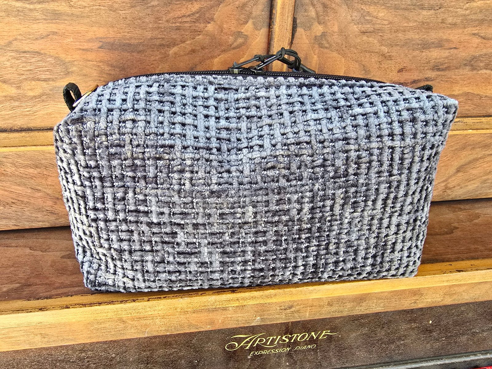 Each bag is fully lined, with two sturdy black handles, and double zipper pulls. They measure approx. 23 cm wide x 9/10cm x 17cm High (9″ x 4 1/2″ x 6 1/2″) although it would be best to check the sizes of each bag in the photo description as the sizes described will be more precise. This is due to the fact that I have a limited amount of fabric to work with.