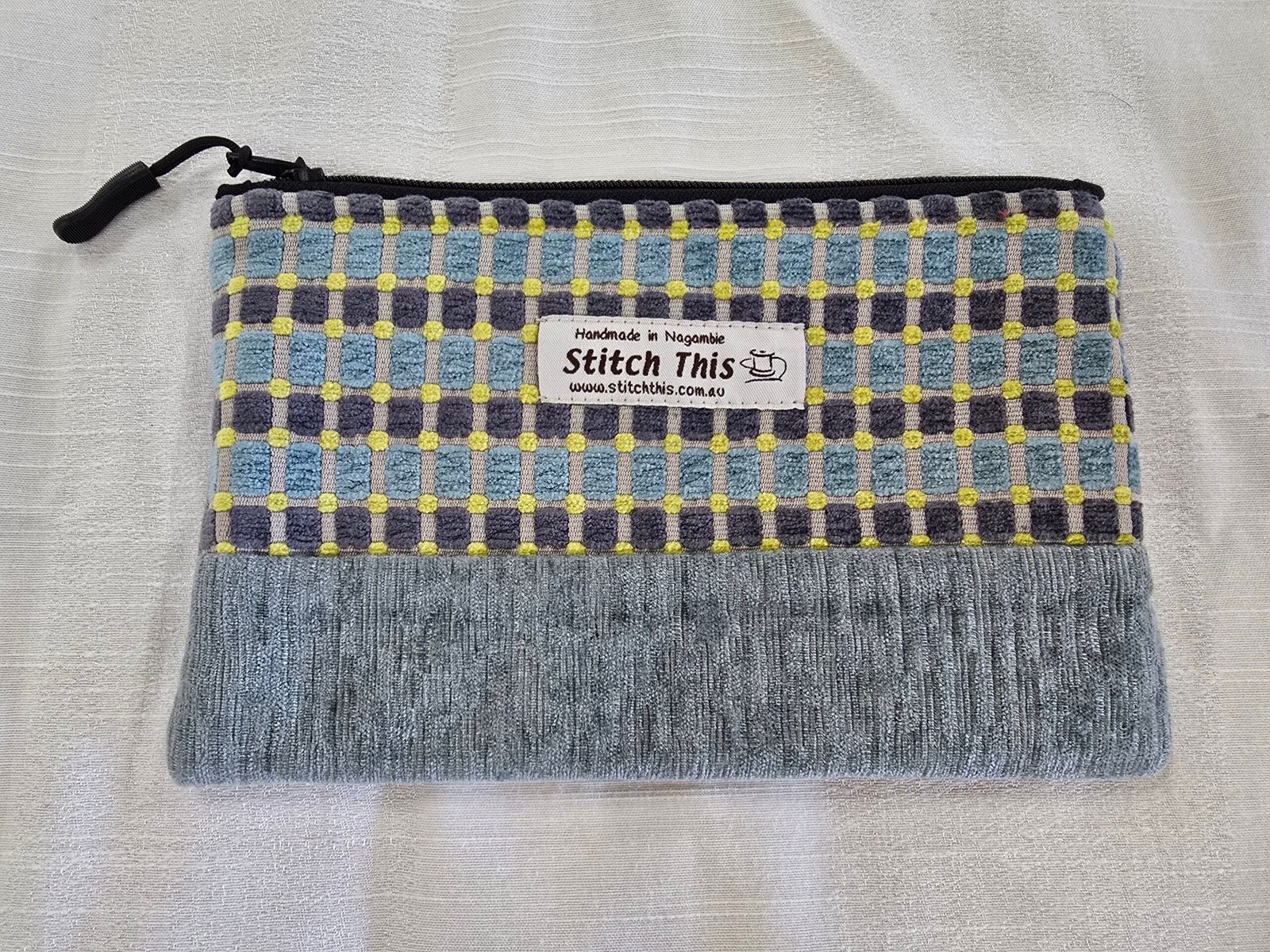 Upcycled Upholstery Fabric Zippered Pouch – Aqua