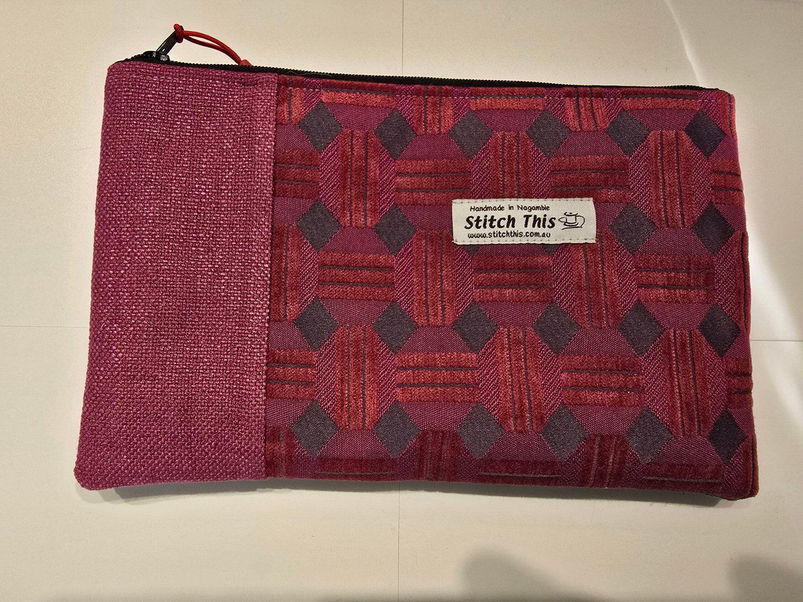 Upcycled Upholstery Fabric Zippered Pouch – Pink/Salmon