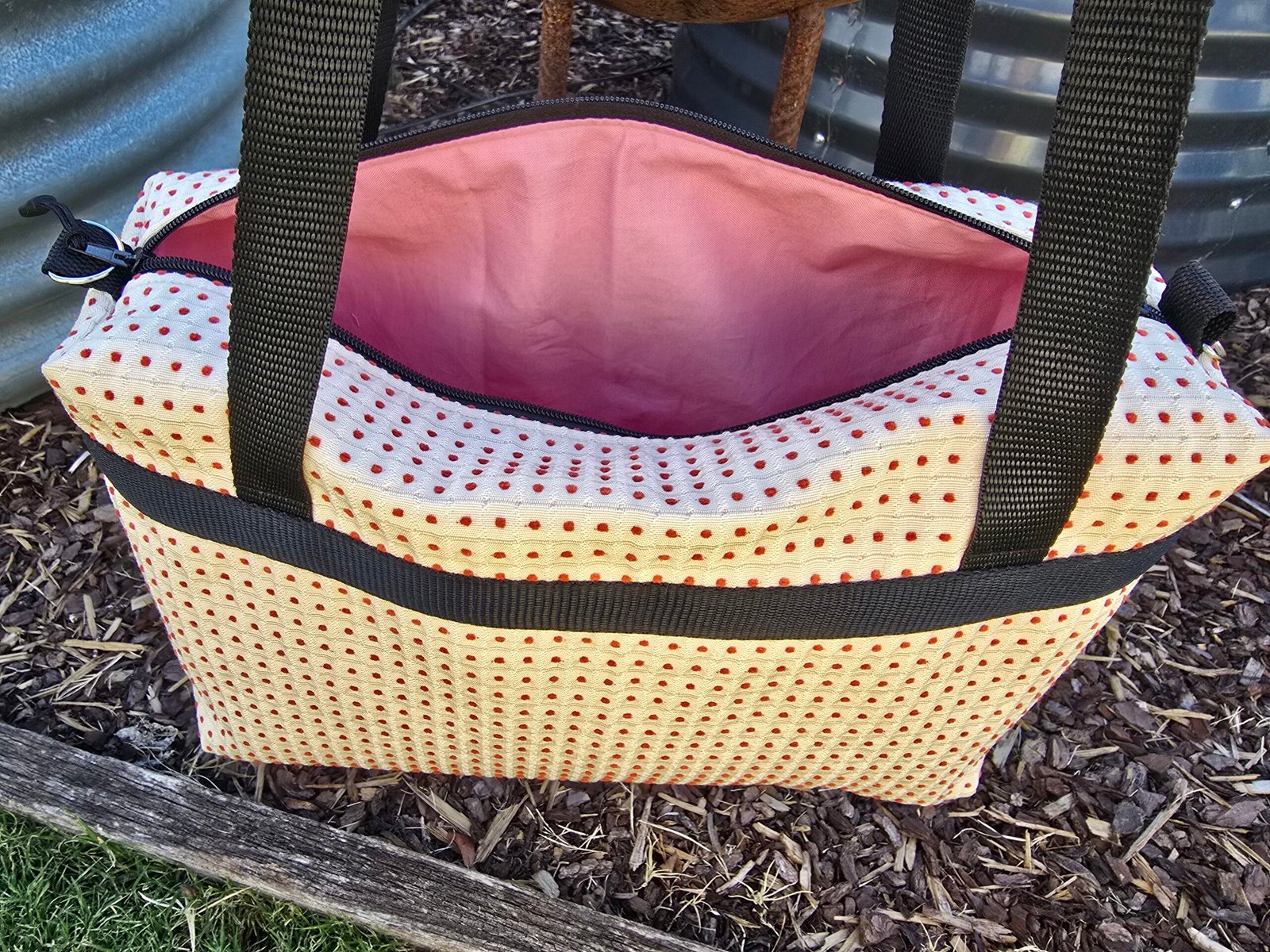 All my bags are proudly made by me in Nagambie Vic using (NEW) Reclaimed upholstery fabric. By purchasing this product, you have save even more fabric from entering the waste stream.